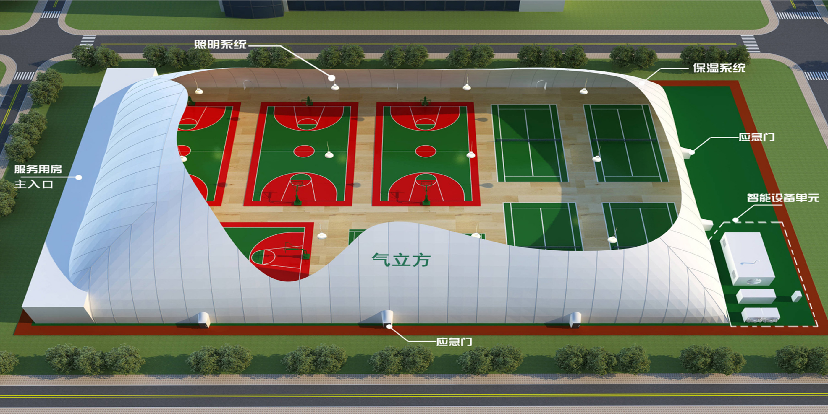充分發揮建筑師的想象力,又體現結構構件清晰受力之美。 由于膜材具有一定的透光率,白天可減少照明強度和時間, 能很好地節約能源。